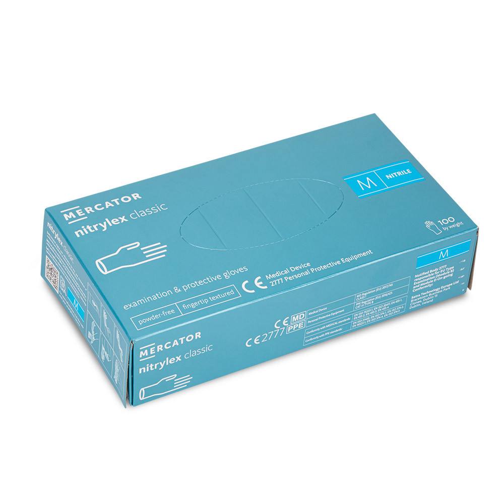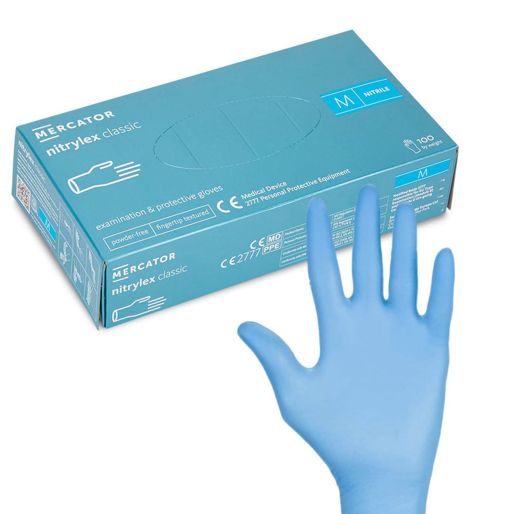 Vienreizlietojamie nitrila diagnostiskie un aizsargcimdi Mercator, izmērs M, zili, 100 gab.