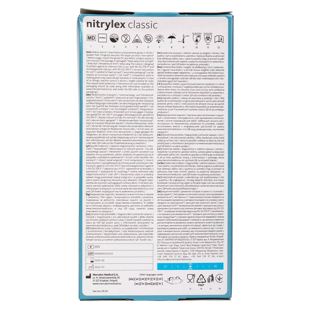 Nitrylex Classic ir nitrila diagnostiskie un aizsargcimdi, nesterili. Teksturēti pirkstu galos, bez pūdera. Iekšējā virsma hlorēta. Ar rullētu manšeti.